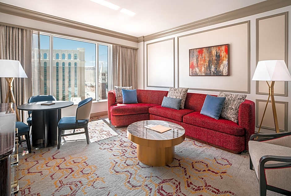 A stay in a Prestige room at The Venetian includes the following exclusive amenities: Private check-in Personal concierge assistance, continental breakfast, afternoon coffee and tea, hot and cold appetizers in the evening and cocktail reception. These amenities are available in the Prestige Lounge on the 36th Floor of The Venetian with its amazing views of the Las Vegas Strip. Inspired by the traditional ornate costumes of the Venetian Carnival, this newly remodeled 650-square-foot Luxury King Suite in The Venetian features a contemporary, fresh design. The suite includes an oversize king bed, a distinct living area with open bedroom, and a luxurious all-marble bathroom with an oversize tub. Additional amenities include a complimentary empty refrigerator for personal use, as well as conveniently located USB, USB-C, and electrical outlets on each nightstand.